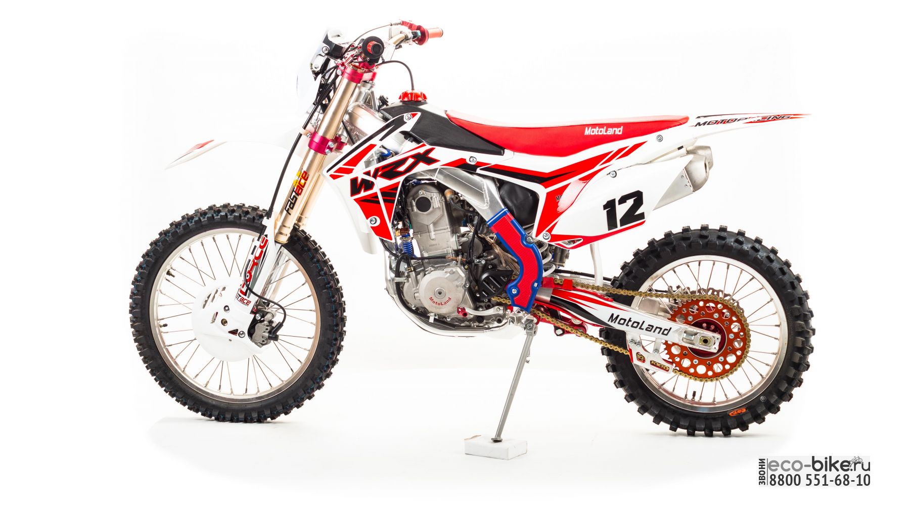 Мотоцикл Motoland WRX450 NC (190MQ) - топовая модель линейки Motoland, стильный и солидный байк с новейшими деталями для поездок по бездорожью или участия в соревнованиях по мотокроссу. Подойдет как для любителей, так и проффесиональных райдеров. Большие колеса с алюминиевыми ободами и буксаторами справляются со сложнейшими участками трассы. Установлена фризерованная ступица. Рама из алюминиевого сплава отлично выдерживает нагрузки и имеет высокую износостойкость. Антибуксаторы спереди и сзади для езды на пониженном давлении или защиты от прокручивания камеры.